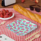 Neon Wassermelonen Scheiben und Samen auf cyan blauen Streifen. | © und ® Bigstock® - Alle Rechte vorbehalten.
