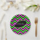 Farbige, neonfarbene Papiertafel mit einem rosa, grünen und schwarzen Zickzack Zickzackmuster. Die Grafik eines neongrünen und magenta gerahmten schwarzen ovalen Textbereichs, in der Mitte der Platte, hat neongrün und rosa Text bereit für Ihre Veranstaltung personalisieren. Matching Produkte sind erhältlich.