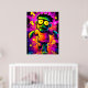 Mit diesem neonfarbenen Zombie-Poster bringen Sie Halloween-Energie an Ihre Wände. Ein Cartoon-Monster mit grüner Haut und leuchtenden Gelbtönen springt vor einem chaotischen Neongraffiti-Hintergrund. Spaß, beängstigend und farbenfroh - perfekt für Halloween-Partys, Teenageräume oder Sammler urbanen Neon Horrors.