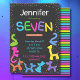 Neonfarben Tierballons 7. Geburtstag Einladung