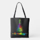 Neonfarbgitarre und -Musiknote auf schwarzer Taschen-Tasche