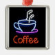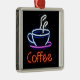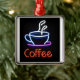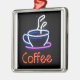 Neonkaffee-Zeichen auf Schwarzem Silbernes Ornament