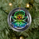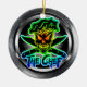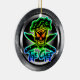 Ein cooles Neon umriß Kochsschädel mit gekreuzten Messern gegen einen metallisch ähnlichen Hintergrund. Diese kulinarische themed Schädel-Kochsverzierung macht ein großes Geschenk für die mit einer heftigen Leidenschaft für das Kochen.
