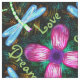 Neonlibelle ist ein wiederholendes Muster der hell glühenden grünen Libellen mit den schillernden Türkisflügeln, die um ein Glühen rosa und lila Blume fliegen. Die Libellen und die Blume stehen heraus hell gegen den hauptsächlich dunklen Hintergrund des Schwarzen mit Schimmern des Lichtes im Orangegold und im Grün, das das Gefühl von Reflexionen auf Wasser nachts gibt. Dieses ist eine ursprüngliche Musterhand, die durch Sue Chastain © 2015 gezeichnet wird.