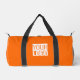 Suchen Sie Markenartikel oder Geschenke für Mitarbeiter oder Kunden?Gewollt kundenspezifische Ausrüstung für Ihre Teammitglieder oder Unterstützer? Stell dich stilvoll heraus! Duffle Tasche mit neonorangefarbenem Hintergrund und Cover Logo. Fügen Sie jetzt Ihr eigenes Logo hinzu. Modernes Design von Alma Wad.