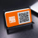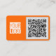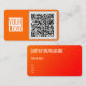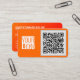 Visitenkartenvorlage mit leuchtend neonorangefarbenem Hintergrund, QR-Code und handsignierbaren weißen Schriftart .Einfaches und trendy Design von Alma Wad .Personalisieren Sie jetzt beide Seiten .Es kommt 100 in einem Pack .