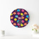 Stylized Rosen in hellem Neonrosa, blau, gelb und Koralle mit grünem NeonBlätter spangled über einem tiefpurpurnen Hintergrund, um ein Spaßblumenmuster zu schaffen. Fertigen Sie das Monogramm auf dieser Uhr besonders an, um es Ihre Selbst einzigartig zu machen.
