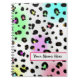 Ein gewundenes Notizbuch, das einen 80er kennzeichnet, inspirierte Neonleoparddruckentwurf. Personifizieren Sie mit Ihrem Namen.