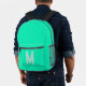 Gedruckter Rucksack mit neontürkisfarbenem solidem Hintergrund und fett weißem Schriftart Einfaches und trendiges Design von Alma Wad. Personalisieren Sie es jetzt mit Ihrem Monogramm.Ein neon türkisfarbener Rucksack appelliert an Jugendliche für Stil, junge Erwachsene für Mode und Einzigartigkeit, und Eltern, die eine praktische, sichtbare Schultasche für Kinder suchen.
