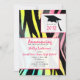 Eine Klasse Abschlussmitteilung 2012, die einen Neonzebradruckhintergrund auf Front und Rückseite kennzeichnet. Vordere Eigenschaften "Klasse von 2012" Text mit Abschlusskappenentwurf. Personifizieren Sie mit Details Ihrer Gelegenheit.