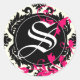 Neopolitan Damask Monogram "S" schwarz/weiß/fuschi Runder Aufkleber