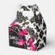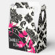 Eine kühne, stilvolle Geschenkbox mit einem glamourösen Damast-Muster aus Schwarz-weiß und fuschia. Verwenden Sie den Button "Anpassen", um mit Ihrem eigenen Text zu personalisieren. Wenn Sie Hilfe benötigen, kontaktieren Sie mich bitte, bevor Sie Ihre Bestellung aufgeben. E-Mail: cheryl@glamprettyweddings.com/Kontakt. Passende Einladungen, speichern Sie die Daten, Papier Cocktail-Servietten, andere Vorzugskisten und viele andere Produkte zur Verfügung. "Neopolitan Damask Paisley" Originaldesign von Cheryl Daniels © 2014.
