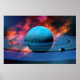 Der wunderschöne blaue Planet Neptun mit seinem Ringsystem und einem seiner Monde.