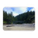 Blick auf die Brücke über den Cummins-Bach, der direkt in den Pazifischen Ozean führt. Der Nebel löste schließlich einen sonnigen Morgen im Neptune Staat Park an der Küste von Oregon ab. Foto vom Mai 2015.