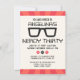 Nerdy 30 Geburtstagsfeier Einladung (4.5 x 6.25") mit einem Paar geeky Brillen und Pi-Symbole. Dunkler, anpassbarer Text auf leicht weißem, cremefarbenem Hintergrund. Oben und unten sind hellrote Sonnenschutzstreifen. Spaß Design mit einer Touch Retro. Grosses Party zum 30. Geburtstag lädt zu allen Freaks ein.