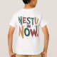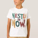 Dieses komfortable T - Shirt-Design enthält den Text "Nestle in Now", eingebettet in eine gemütliche Abbildung eines Vogelnestes. Der Text selbst verwendet warme und einladende Farben, um ein Gefühl von Entspannung und Komfort zu schaffen.
