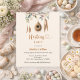 Für ein Party zum Thema Babydusche. Die Einrichtung ist mit einem Vogelnest im Bohustyp dekoriert. Beigefarbener Hintergrund. Personalisieren und hinzufügen von Namen und Party-Details. 1 Blatt = 1 Einladungs-Druckkante bis Kante.