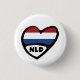 Netherlands Country Code Flag Heart Pin Badge, NLD Button