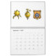 Ein Kalender mit verschiedenen Bildern, einschließlich Werkzeuge und Abzeichen