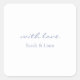 Elegant und elegant. Einfache, neutrale und unvergessliche Hochzeitsgeschenk-Aufkleber mit knusprigem weißem Hintergrund und staubblauem Schriftart.