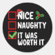 Netter Naughty, es lohnt sich Weihnachten Runder Aufkleber