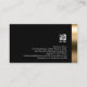 Dieser beeindruckende berufliche Netzwerkingenieur Computer und IT-technische Fähigkeiten fett schwarze Visitenkarte zeichnet sich durch einen eleganten Imitat/fotografischen Goldenen Reflektionsstreifen am unteren Rand aus. Ihr Name und Titel erscheinen über diesem gemusterten Rahmen, über einem schwarzen Hintergrund. Das gleiche gemusterte Thema wird auf der Rückseite der Karte angezeigt, außer der Streifen befindet sich auf der rechten Seite. Ihr Firmenlogo und Ihre Kontaktdaten erscheinen auf der schwarzen Seite der Karte. Dieses Visitenkarten-Design macht einen auffallenden ersten Eindruck und ist perfekt für Computer, Engineering, Technik, Technologie, Internet, Online, Web, IT, Informationstechnologie, Computerreparatur, Computerservice, High-Impact, aktiv, elegant, elegant, gold, schwarz, beruflich, stark motiviert.