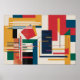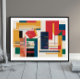 Dieses Stück präsentiert einen strukturierten, aber chaotischen Wandteppich aus Rechtecken, Balken und linearen Segmenten, der an die Moderne der Mitte des Jahrhunderts und De Stijl-Prinzipien erinnert, aber mit einer spielerischeren, dekonstruierten Drehung. Vertikale und horizontale Linien schneiden sich durch fette Senfblöcke in Gelb, Rot, Waldgrün, Marine und Schwarz, während dicht gepackte Brutlinien (insbesondere die Rot- und Marinefelder) ein taktiles, fast gewebtes Gefühl einführen. Das asymmetrische Layout schafft ein Gefühl der unterbrochenen Ordnung - wie ein digitaler Schimmer in einem analogen Rahmen. Es fühlt sich an wie eine visuelle Rhythmusmaschine, jede Linie und blockiert einen Beat oder Pause in einer größeren, abstrakten Partitur.