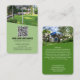 QR Code Visitenkarte für Lawn Care. Foto beidseitig, senkrechte Visitenkarte. Moderne Vernetzung beruflicher Logokarten für Pflegeprodukte