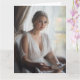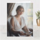Diese bezaubernde Kunstkarte zeigt ein ruhiges Aquarellportrait einer schönen blondhaarigen jungen Frau in einem weißen Seidenkleid. Sie sitzt an einem Fenster und hält ein offenes Buch und dreht ihren fesselnden Blick zum Betrachter. Der sanfte Aquarellstil vermittelt wunderbar den stillen Anmut und literarischen Charme der Szene. Diese Karte ist ideal, um eine nachdenkliche Notiz zu senden, eine Nachricht an einen anderen Buchliebhaber, oder für jeden, der Kunst schätzt, die Momente der ruhigen Verbindung einfängt.