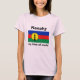 Auf der Front dieses Shirts begleitet ein editable Titel und ein Slogan die neue kaledonische Flagge mit seinem schwarzen Motiv in einem gelben Kreis über Blauem, Rot und Grün. Die Rückseite zeigt eine ausführliche Karte von Neu-Kaledonien an.