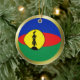 Beide Seiten dieser Verzierung kennzeichnen die Flagge von Neu-Kaledonien verwandelten in einen Kreis mit einer goldenen Kante. Einfache neue kaledonische Dekoration für Ihr Zuhause.
