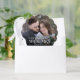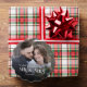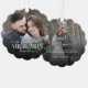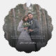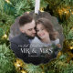 Diese moderne, minimalistisch personalisierte Weihnachtsschmuckkarte verfügt über eine Fotovorlage auf jeder Seite, mit eleganter Overlay-Typografie "Mr. & Mrs.," mit Namen und Jahr auf der Vorderseite, und eine personalisierte Botschaft auf der Rückseite.
