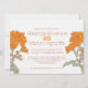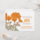Floral chrysanthemum grafische Blume zeichnend mit grafischem Farbüberlagern mit einer neuen Hochzeit im Herbst Datum Einladung neu geplant. Bearbeiten Sie diese Einladung mit Ihren eigenen Namen und Hochzeitsdetails. Ideal für ein hellorangefarbenes, weißes und braunes Thema, das jetzt für Hochzeit im Herbst, Verlobung oder Jubiläum verschoben wird. Einzigartige zeichn- und Grafikkunst und -design von Sarah Trett. www.sarahtrett.com für www.mylittleedenweddings.com