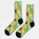Vergnügungssocken mit einem Muster lächelnder Früchte und Gemüsesorten, die Orangen, Zitronen, Erbsen, Karotten, Glockengebäck und vieles mehr auf grünem Hintergrund enthalten. Fügen Sie ein oder zwei Paar in Ihren Warenkorb, holen Sie sie Zuhause, dann genießen Sie sie auf Ihren Füßen! Neuartiges Fun Muster Gemüsefrüchte-Socken süße Küche Kunst | ©Melissa Patton - Künstler/Illustrator