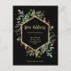Diese atemberaubende Urlaubsankündigung mit einem geometrischen Rahmen aus Imitaten mit goldenen Blätter, elegantem Weihnachtsgrün und roten Heiligbeeren auf modernem schwarzem Hintergrund. Trendy, Imitate goldfarbene Typografie sagt "New Address". Die perfekte Art, Ihren Freunden ein frohes Weihnachtsfest von Ihrer neuen Zuhause zu wünschen!