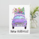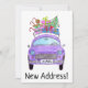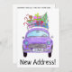 Neue Adresse Lila Car mit Weihnachtsgeschenken Einladung