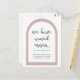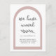 Einfache und schicke, bewegende Ankündigung mit "wir haben verschoben", einem hübschen grauen Botanischen Botanischen Zweig in Aquarellfarbe, trendy rosa Bogen und neuen Adressinformationen.