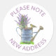Rustic New Address Alert - ideal für Umschlag Aufkleber oder als Aufkleber für Ihre Korrespondenz, um die Aufmerksamkeit auf Ihren Adresswechsel zeichnen. Das Aquarelldesign besticht durch eine gemütliche und malerische Wasserdose mit Lavendel-Blume, einem Schmetterling und einer kleinen goldenen Finca. Die kapitalisierte Typografie ist blau und lautet "BITTE NOTE NEW ADDRESS". Schöne rustikale Abbildung. Bitte stöbern Sie in unserer New Address Collection für die Koordination der Mailinglieferungen.