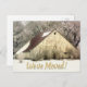 Fun change of address postcards - Lest 'We've Moved' in handgeschriebener Schrift mit einem Schlagschatten vorne. Hintergrund ist ein Foto alter Scheune mit rotem Dach im Winter umgeben von Schnee. Bereit, auf der Rückseite mit Ihrem Namen und Ihrer neuen Adresse personalisiert zu sein. Mehr Adresskarten wechseln Sie in unserem Zazzle.com/angela65* Shop. Der gesamte Text ist vollständig anpassbar - Wortlaut, Farben, Stile, Größen.