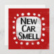"New Car Riech" ist ein lustiges Textdesign mit weißer Akzent-Form, umgeben von weißen, weißlichen, weißlichen, weißgetönten Punkten.
