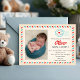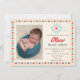 Senden Sie Ihren Freunden und Ihrer Familie die wunderbare Nachricht von der Ankunft Ihres kleinen mit diesen personalisierbaren Baby-Ankündigungskarten. Ein wunderschöner Postkartenstil mit einer fröhlichen roten und blauen Grenze. Kindermädchen auch in diesem Stil erhältlich.