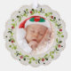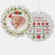 Neue Babygeburt steht für Weihnachtsschmuck im Foto. Das Design zeichnet sich durch den Namen des Babys an der Spitze und die Geburtsdaten am unteren Ende aus. Die erste Weihnachtsschmuckdekoration kann mit dem Namen des Babys, dem Jahr und einem Foto an der Vorderseite abgestimmt werden.