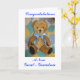 Ein niedlicher kleiner Teddy mit einem blauen Bogen sitzend auf einem Patchwork Babydecke mit dem Text Herzlichen Glückwunsch - Ein neuer Große - Grandson.