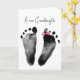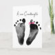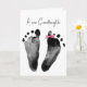 Neue kleine Mädchen Fußabdrücke mit rosa und weiß polka dot band Bogen auf weiß für Großeltern. Text ist bearbeitbar.