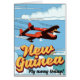 Neue Guinea Abenteuer Poster. Ein Vintager Stil Requisiten Flugzeug Cartoon Stil Urlaubstext.