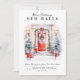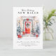 Mit dieser modernen Urlaubskarte, mit festlichem Beifall, Aquarelltür und Weihnachtselementen, kündigen Sie Ihre neue Zuhause an.