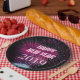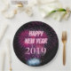Diese Teller mit schwarzem Hintergrund verfügen über ein lila Feuerwerk mit "Happy New Year", das in einem großen lila Schriftart geschrieben ist. Das Jahr "2019" wird unter geschrieben. Passen Sie diese Platte so an, wie Sie wollen.