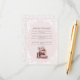 Die Einladung zu einem Baby-Duschabend mit dem Thema 'Neues Kapitel' ist eine reizvolle Einladung. Die Karte zeigt Abbildungen eines Aquarellbildes mit blühenden Büchern und der Hintergrund ist hellrot-rosa Pfannkuchen in sanfter Farbe. Lass deinem Gast, dass du wünschst, dass er ein Buch mitbringt, damit das Kind kommen kann. Klassischer deutscher Schriftart für ein Gefühl alter Kinderbilderbücher.