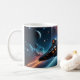 Ein Raumschiff fliegt über einen neuen Planeten auf dieser Weltraum-Tasse. Ideal für alle, die Lieben auf Schiffen, Science Fiction und Raumforschung durchführen.