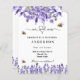 Ein eleganter weißer Hintergrund mit Lavendelblumenmotiven, Blume und Bienen. Personalisieren Sie Ihre neue Adresse und Ihren neuen Namen. Mit mehr Grün mit einem Herz. Für frische Weds und ihre 1. Zuhause zusammen.